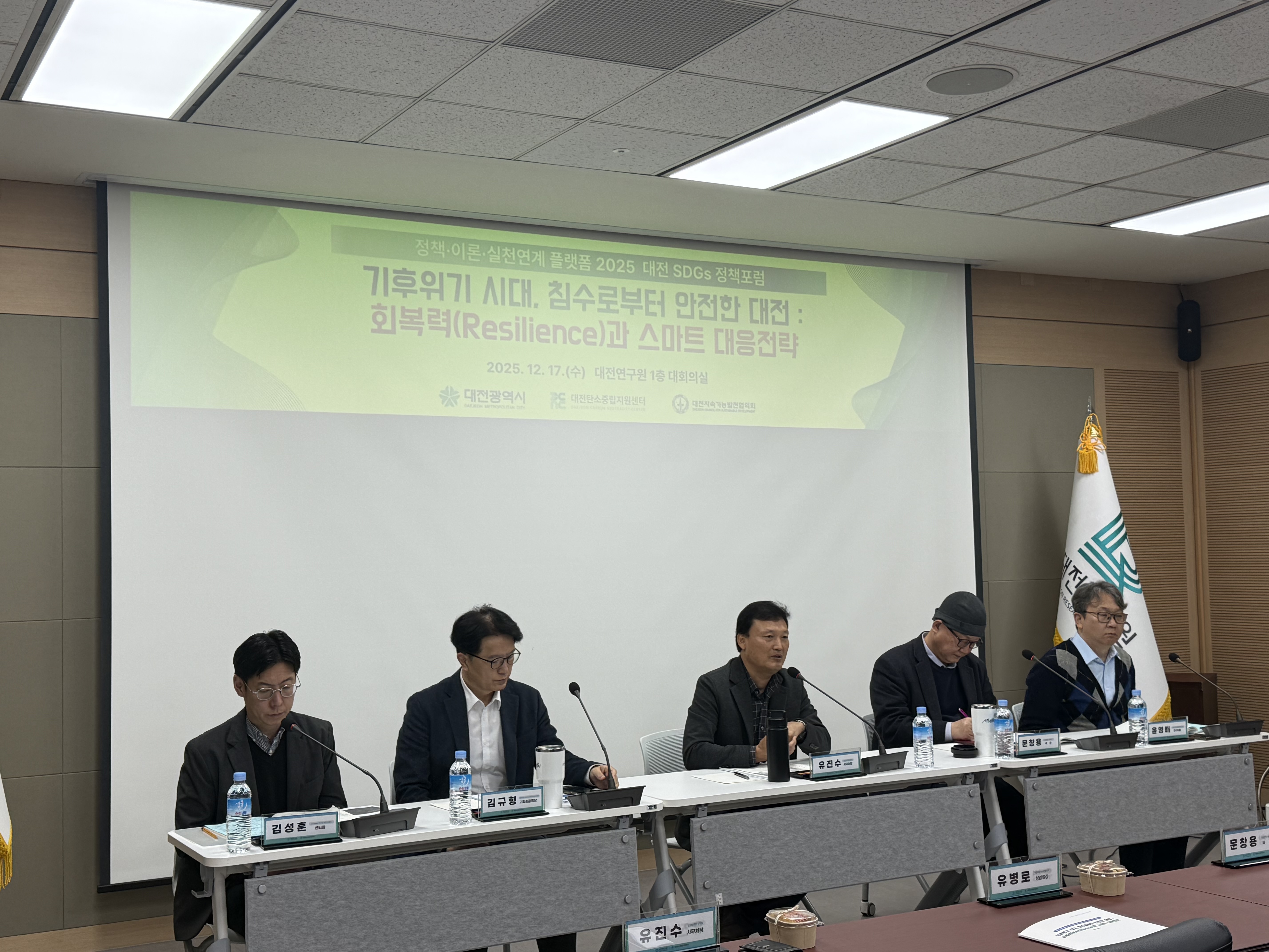 이번 포럼은 ‘기후위기 시대, 침수로부터 안전한 대전: 회복력(Resilience)과 스마트 대응전략’을 주제로, SDGs 목표 11(안전한 도시)과 13(기후변화 대응)을 중심으로 도시침수에 대한 정책적·기술적 대응 방향을 모색했다.